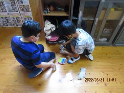 3名で口にした「ありがとう、バッタさん。ばいばい。」