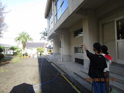 昼休みなのに、草刈りをする体育先生のお手伝いに、