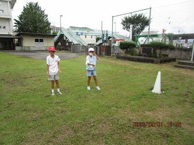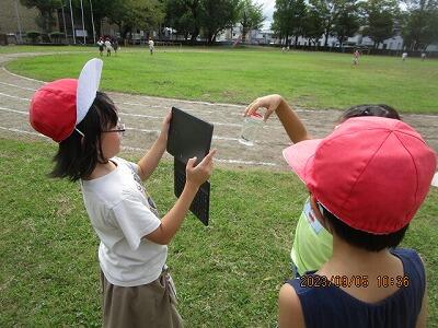 現在、運動場は、運動会に向けて、職員と子どもたちが一生懸命整備中。