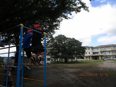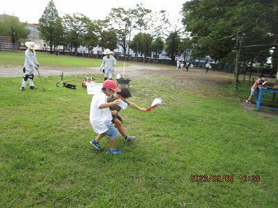 運動場が騒がしいので、何かしら?と、のぞくと。