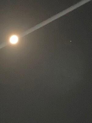 満月に近い明るいお月様の右側。