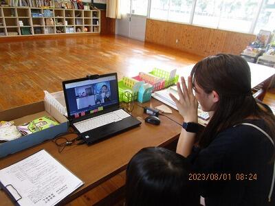 フレンドの子どもさん、各学年に分かれて、クラスでお友達とオンライン交流です。