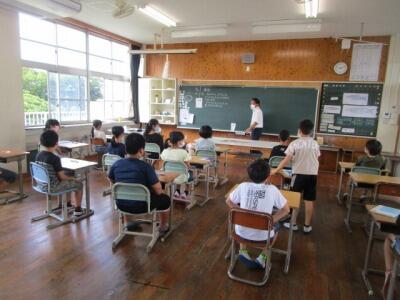 4年生、市教委の先生方の訪問を受けて、研究授業が行われました。