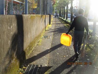 落ち葉掃き みんなでがんばる 明道校(6年)