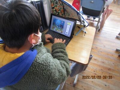 3年教室。やってる、やってる。お魚タイピング、多数挑戦中!