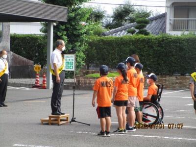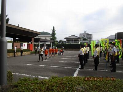 300名の市役所職員が、安全運動で立ち尽くす交差点を、