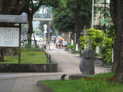 続々参集する市役所職員、300名。(コロナ対策により1/5参加)