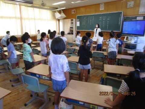 代表児童あいさつ、3年生男児。スタンバイ。緊張気味。