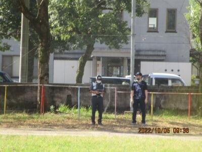校門のココスヤシの実を子どもたちに踏ませないように、