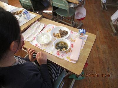 今日の給食、「ドライカレーだよ」は、校長の表の見間違いで、本日の給食は「洋風かきたま汁」でした。お二人さん、子どもさん方、ごめんなさい。ドライカレーは、明日、でした。_(._.)_