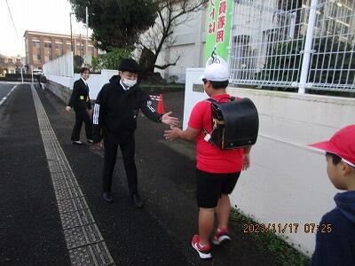 校長が、給食の予告を毎朝、あいさつ運動の時に、行っています。