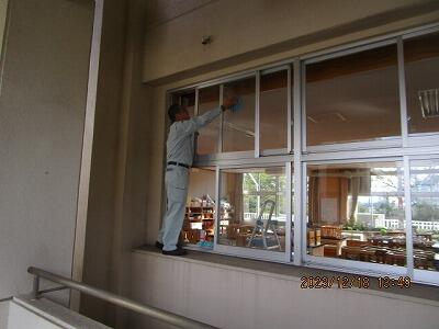 学校中の「窓ガラス」のプロの「磨き」をリクエストしました。