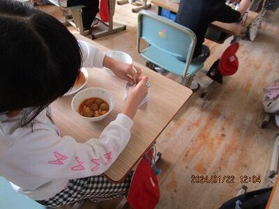 さいごに、クラスレクリエーションです。おうちの方々がけい画してくれて、親子ゲームとおいもパーティがありました。休みの日に友だちと会えて、体いくかんでゲームができて、楽しかったです。あそんでいたら、おいしいいも天うどんがまっていました。わたしは、じつは、いもがにがてだけど、みんなで育てたおいもは、とてもおいしかったです。友だちとわいわい食べて、とてもおいしかったです。