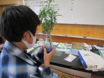 ホウセンカの水の通り道を確かめたよね・・・という。