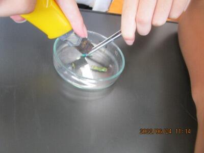 この、根や茎や葉の水の通り道を見るのが目的です。