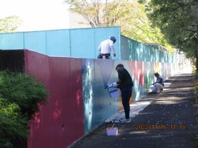 塗魂ペインターズ協力の下、PTA会長、校長、教頭、