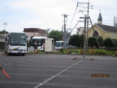 バスが、まるで、豪華客船の出迎えのように、駐車場を占拠します。