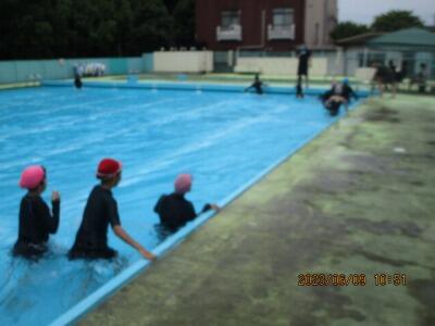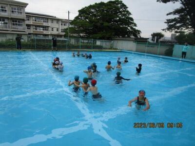 1年生、快晴の中、思い出いっぱいのプール開きでした。