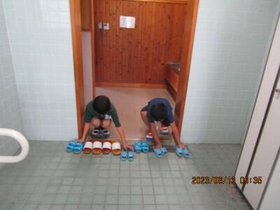 おトイレでは、お友達が乱したスリッパも、僕が並べてあげます。