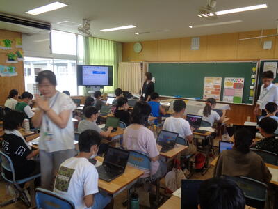 1年生は国語の「かたかなをみつけよう」、2年生は図工の「うごくうごくわたしのおもちゃ」、3年生は学級活動の「タブレットの使い方(情報モラル)」、4年生は図工の「もりあげマスコット」、5年生は家庭科の「ソーイングはじめの一歩」、6年生は総合的な学習の時間の「鹿児島すてき発見」の学習でした。