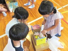 1年生に楽しく遊んでもらうために、いろいろな工夫をしているようです。楽しくなる工夫は、まだひみつです。