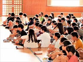 校長先生からは、早寝早起きをすること、交通ルールを守ること、熱中症に注意することなどの話がありました。生徒指導の先生からは、自転車のこと、水の事故にあわないこと、熱中症に気を付けることなど、きまりを守って楽しい夏休みになるようにという話がありました。