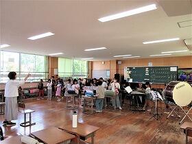 1年生は音楽で、けんばんハーモニカの練習をしています。
