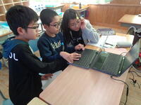 12月27日、東京の渋谷で開催されたサミットに6年生の3名がオンラインで参加しました。全国各地のジュニアICTリーダーが参加する大きな会議でしたが、都城市と学校のよさを堂々と発表しました。「南小と都城市のPRは大成功です。」と自信たっぷりの3名でした。