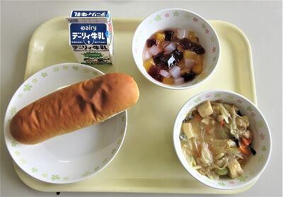 献立は、「牛乳、ミルクパン、鶏肉の八宝菜、フルールカクテル」でした。