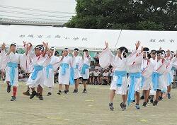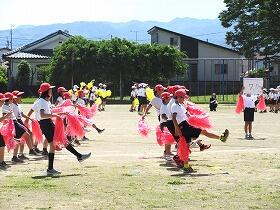 運動会では、伝承芸能である「下長飯手拍子踊り」を踊ります。