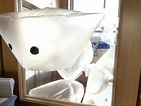 3年生は、図工で、大きな袋に空気をたくさん集めて、つなげたり積み重ねたりしました。空気を集めるために走り回ったり、友だちと協力したりして、楽しんでいました。