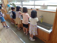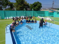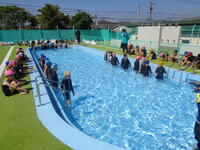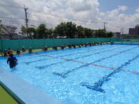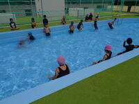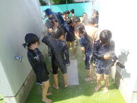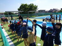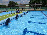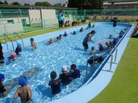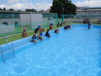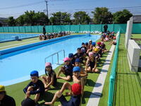 7日は梅雨の合間の貴重な晴天でした。1年生のプールの時間です。注意や準備運動の後、「バディ」「オー」と2人組、3人組の確認をしました。「冷たかった」「気持ちよかった」「顔をつけたよ」「大きなプールに入りたい」といろいろな感想が出ました。ルールを守って楽しい時間になったようです。