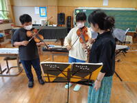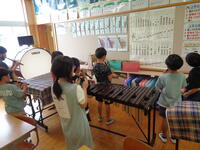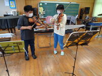 器楽クラブを紹介します。毎週月曜日に音楽室で練習しています。海野千尋先生の指導のもと楽器や楽譜と向き合って、メロディーを口ずさみながら楽しそうに練習していました。今は弦楽器を中心に練習しているそうです。1学期の始業式でも校歌のピアノ伴奏に合わせて演奏しました。発表会やクリスマス演奏会、卒業演奏会などを計画中だそうです。歴史を振り返ると、南小器楽部は昭和45年に創部され、フルオーケストラとして演奏会等に出場していたそうです。
