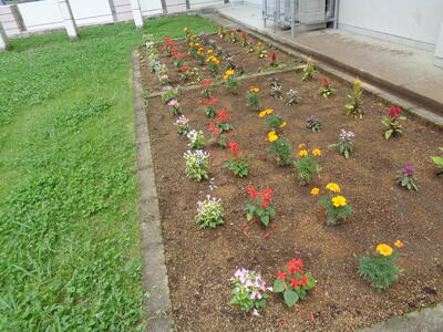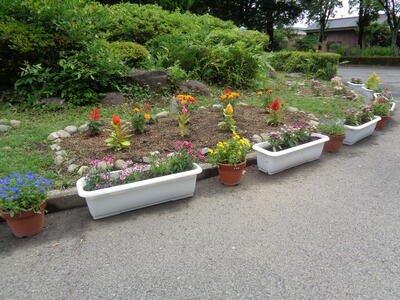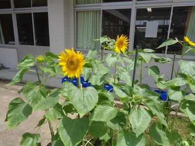 校内の花々が子どもたちを見守っています。晴れ間が多くなり、夏の日差しが似合う花々が元気になってきました。「水分をしっかりとりましょう」「暑さに負けないで」と応援しているようです。