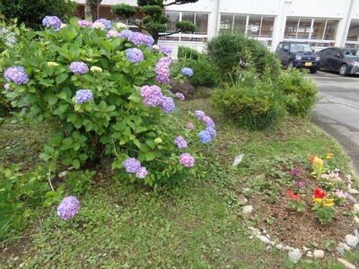 校内の花々に元気をもらう毎日です。あじさいの花が咲き誇ると同時に、学級園も花の植え替えがすすんでいます。学校園は栽培委員会が中心になって整備をしています。ありがとうございます。