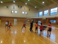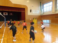 バレーボールクラブ、南球友サンバースを紹介します。南球友クラブとして昭和60年に発足し現在まで続いている、歴史あるスポーツクラブです。監督、コーチのもと南小学校の体育館を中心に練習しています。玄関の靴がきちんと並んでおり、外まで常に大きなかけ声、大きな返事が聞こえていました。中に入るとサーブ練習をしていました。驚いたことにほとんどがジャンプサーブを打っていました。小学生もジャンプサーブが打てるように取り組んでいるそうです。また、監督とのレシーブ練習では、監督の強烈なスパイク、フェイントボール等、強弱を使い分けたボールをセッターに上手に返していました。先日の予選で優勝し月末には県大会だそうです。「時間を無駄にしないように集中して練習しよう。」「思いやりをボールにのせて、つないでいくバレーを目指そう。」と話す監督さんの思いが伝わる練習風景でした。