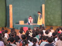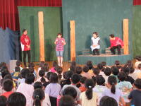 下学年が午前に、上学年が午後に行いましたが、劇団の方が演じられた真剣でユーモアがあって楽しいお芝居の世界に、子どもたちがみるみる引き込まれていくのがよく分かりました。