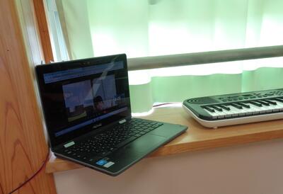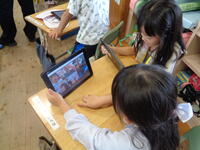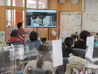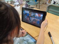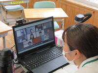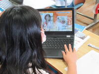 学校を休んだとき、「みんな何をしてるのかな」と思っている子どもたちのためにオンラインによる学習中継があります。熱があるのに無理をして・・・、とならないように保護者の方や本人の気持ち等に配慮しながら行います。音楽室ではリコーダーの練習と御家庭がオンラインでつながっていました。休み時間は手を振り合ったりおしゃべりしたり楽しく過ごしていました。この日は給食も含めて多くの時間がつながっており、さよならのあいさつも一緒に行いました。「さようなら、また、明日ね。」と手を振り合っていました。