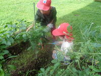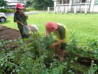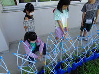 ピーマンやなす、枝豆などが大きくなってきました。収穫の時期を迎えた野菜を一つ一つていねいにとりました。みんなで協力して草抜きもしました。次の収穫も楽しみですね。
