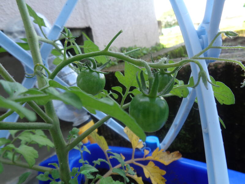 「ぼくのトマトを見てください。」とニコニコしながら2年生から声をかけられました。この前まで小さかったトマトが大きくなっていました。小さなまるい粒でしたが、まるまると大きくなってきました。赤くなる日が楽しみですね。