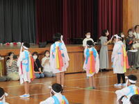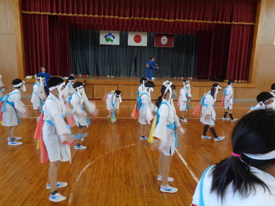 本日は講師の内村先生から衣装の着付けを習いました。練習も衣装を着た状態で行いましたのでいつも以上に真剣な表情でした。発表する参観日も近くなってきました。集中して一生懸命練習している6年生でした。