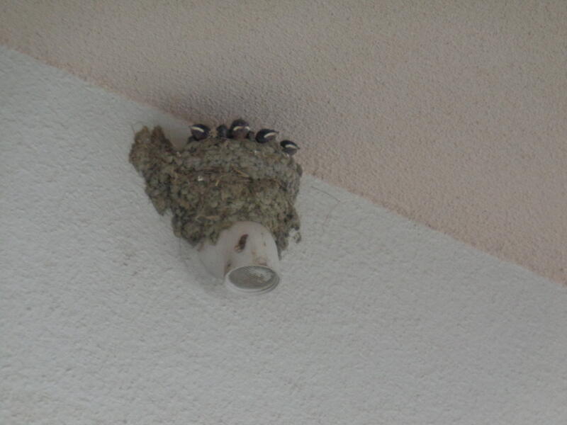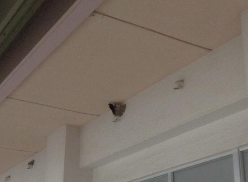 南小学校で子育てをしているツバメさん。人間が近づくと親鳥が威嚇しにやってきます。大きくなった頭が4つ確認できました。順調に育っているようです。先週は「先生、巣の中で羽をばたばたさせて飛ぶ練習をしています。」と子どもたちが教えてくれました。子どもたちの観察はさすがですね、今日は朝からひなの姿がありませんでした。遠くへ旅立ったかな、と少し寂しく思っていましたが、お昼過ぎにもどってきていました。親子で空を飛ぶ練習をしていたのかもしれませんね。