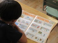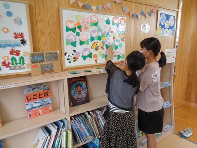今日は南小の読み聞かせグループ「みっけ」の方々がおみえになり、模様替えをしていただきました。子どもたちも一緒になって「あーでもない こーでもない」と楽しそうに活動していました。「みっけルーム」が少しずつ夏にかわっていきました。本の整理整とんもしていただきました。いつもありがとうございます。