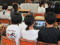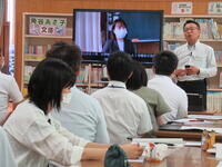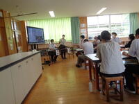 初めに全校朝会では、録画映像で、校長先生の話、生徒指導担当の國宗先生の話を視聴してもらいました。決まりよく元気に夏休みを過ごせているか、暑さ対策のこと、危ない遊びをしないで、命を大切にして過ごすことについての内容でした。