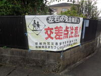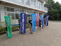 本校を含む隣接する姫城中学校、明道小校区には「姫城地区まちづくり協議会」という組織があります。通学路には交通安全の注意喚起を促す旗や看板を設置していただいています。「通学路です」「子どもたちが通りますよ」と毎日呼びかけているように感じます。狭い道路や交通量の多い場所がありますので大変助かっています。また、あいさつ運動の旗もいただき、校内でも使っています。まちづくり協議会のみなさま、いつもありがとうございます。