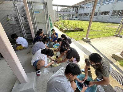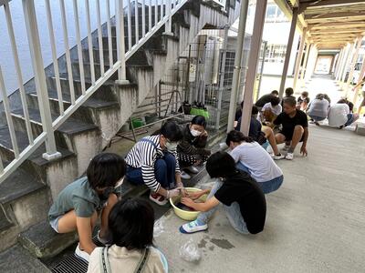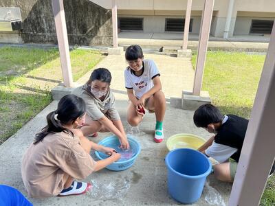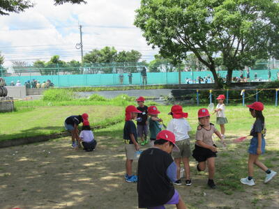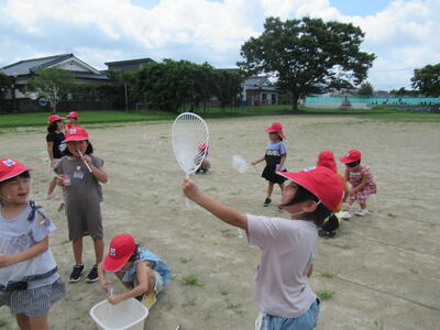 先日の梅雨の合間、1年生の元気な声が運動場から聞こえてきました。子どもたちが大好きなしゃぼんだま遊びです。大小、さまざまなしゃぼんだまが運動場を元気にとびまわっていました。1年生のみなさん、もうすぐ夏休みですね。