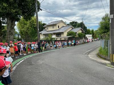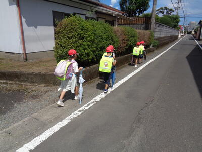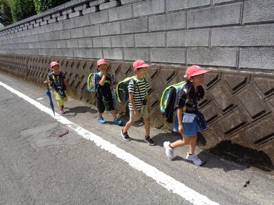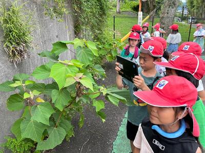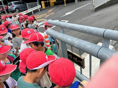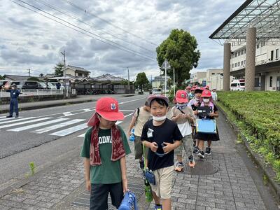 南小学校の周辺を歩いてまわりました。熱中症の心配もありましたので水分補給の注意もありました。病院や電気、牛乳の会社、お菓子屋さん・・・。短い時間でしたが、ゆっくり見てまわるといろいろな発見もあったようです。近くの川には魚、かえる、かめ、へび、鳥・・・がいるそうです。子どもたちの観察力はすごいですね。