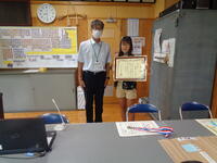 1学期終業の日に子どもたちの表彰がありました。空手の大会1名、環境美化絵画コンクール4名、愛鳥週間ポスターコンクール1名、計6名の入賞者です。おめでとうございます。