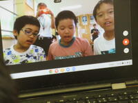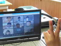 次に、各学級の担任の先生とmeetをつないで、画面上のそれぞれに元気な姿を見ながら、話をしました。健康観察では一人一人の名前を呼んで返事をしてもらったり、元気な様子をゼスチャーで表現してもらったりして会話を楽しみました。8月なので、「平和」についてのお話をしてくださった学級もありました。ありがとうございます。