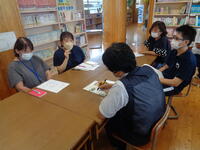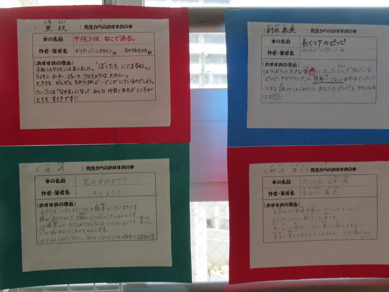 今日の給食時間は、図書館サポーターの黒杭先生による放送読み聞かせがありました。昼休みに図書室に行ってみると、早速その本を手に取って読んでいる子どもがいました。黒杭先生もうれしそうでした。読み聞かせに使った本のコーナーもあるので、読み聞かせの本は特に人気となっているようです。テーブルでは図書委員会の子どもたちがタブレットを活用しながら、設営用の折り紙作りにも取り組んでいました。梅雨の時期、雨の日の図書室はいつも以上ににぎやかでした。